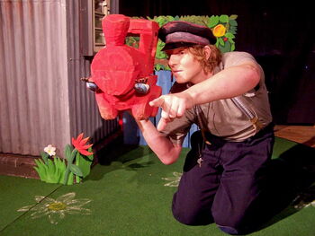 Dieses Kinderstück ist für Leute ab 4 Jahren geeignet und dauert ca. 50 kurzweilige Minuten. Gespielt wird in offener Spielweise, d.h. Schauspiel und Puppenspiel sind durchaus gleichberechtigt. Die vornehmliche Puppenart sind Objekte aber auch Handpuppe spielt eine Rolle. Kann auch im Freien gespielt werden.