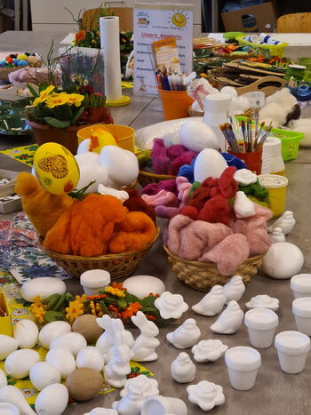 Farbenfrohe Kreativangebote für die ganze Familie mit ganz unterschiedlichen Materialien, wie z.B. Mosaik-Ostereier, lustige Eierbecher oder Frühlingsmobile; dazu Ostergeschichten, Osterbäckerei & Ostercafé.