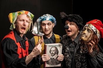 Ja, richtig: da kommen drei Mann mit dem GANZEN Shakespeare! – Nach 35 Jahren mit der europaweit einzigartigen Pferd-und-Wagen-Tour ausschließlich mit Shakespeare spürten wir ein großes Bedürfnis nach MEHR! So unternehmen drei Spieler das Wagnis, das komplette Werk in nur 100 Minuten! zu spielen, zu singen, zu benennen, mit allen Erfahrungen, die Spielbrett mit dem Meister gemacht hat. Wird es gelingen? Auf jeden Fall wird es unterhaltsam!