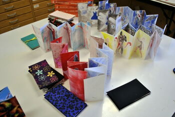 Unter dem Ferien-Motto „Kleine Künstler ganz groß!“ wird eine Leporello mit selbst gemalten Bildern gestaltet. (Kosten 2,00 €)