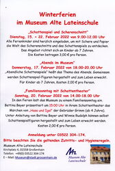 Ab ins Museum! lautet das Motto der Winterferien 2022. Für Kinder ab 7 Jahren stehen in der ersten Ferienwoche vier Veranstaltungen auf dem Programm.